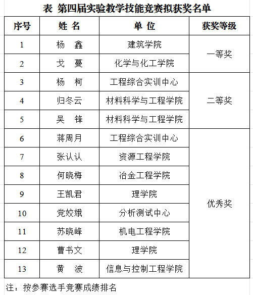 决赛评审组围绕教案设计、实验类型、教学讲授与示范操作、教学组织与实验指导、学生实际操作、AI赋能实验创新等方面,对参赛人员进行了认真评比,最终评选出一等奖2名、二等奖3名、优秀奖8名。现将拟获奖名单予以公示(详见表),接受师生监督。